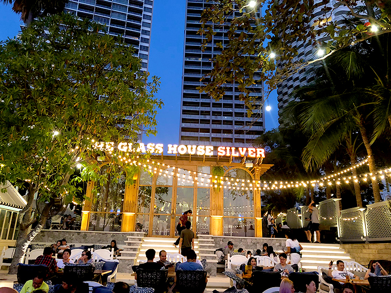 ジョムティエン湾の砂浜に建つ海辺のレストラン、ザ・グラスハウス・シルバー(The Glass House Silver)
