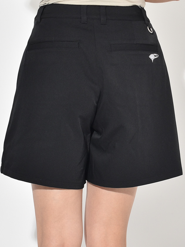スポーティになりがちなショートパンツを、柔らかく女性らしい雰囲気で着こなせます。タックは部分的にステッチで抑えているため、お腹周りの膨らみが目立ちにくいように工夫されています。※ホワイトのみ裏地つき仕様です。全体的に裾に向かって広がったシルエットのため、見た目以上に動きやすいサイズ感です。シーズンレスで着用できるポリエステルツイル素材を使用しています。