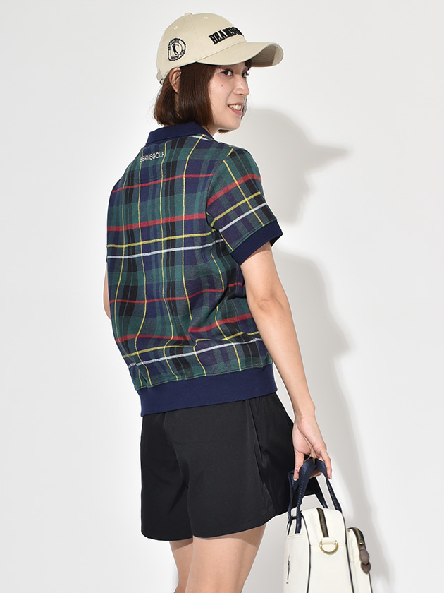 ビームスゴルフ 25年秋冬新作 襟付き チェック 半袖プルオーバー 83-02-0129-286