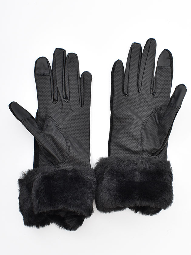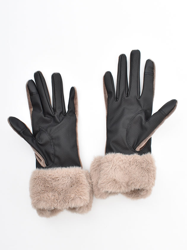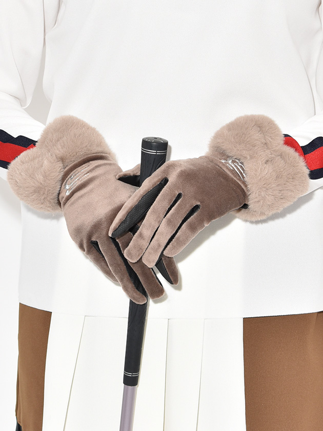 上品な光沢感のあるベロア素材と、ふんわりとしたフェイクファーを組み合わせたウォームグローブ。