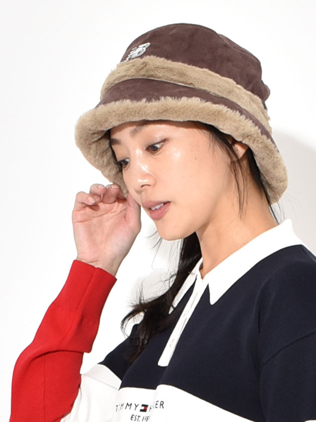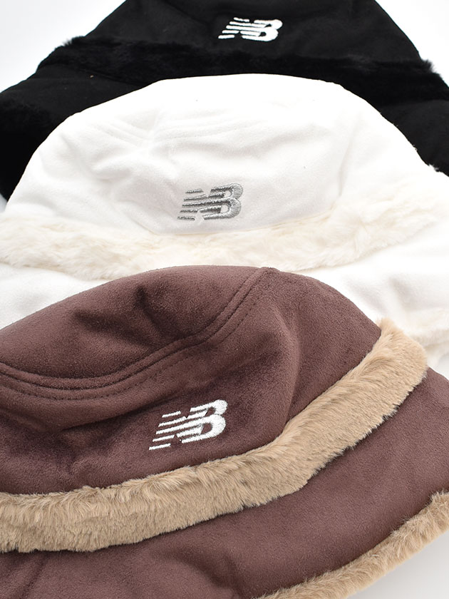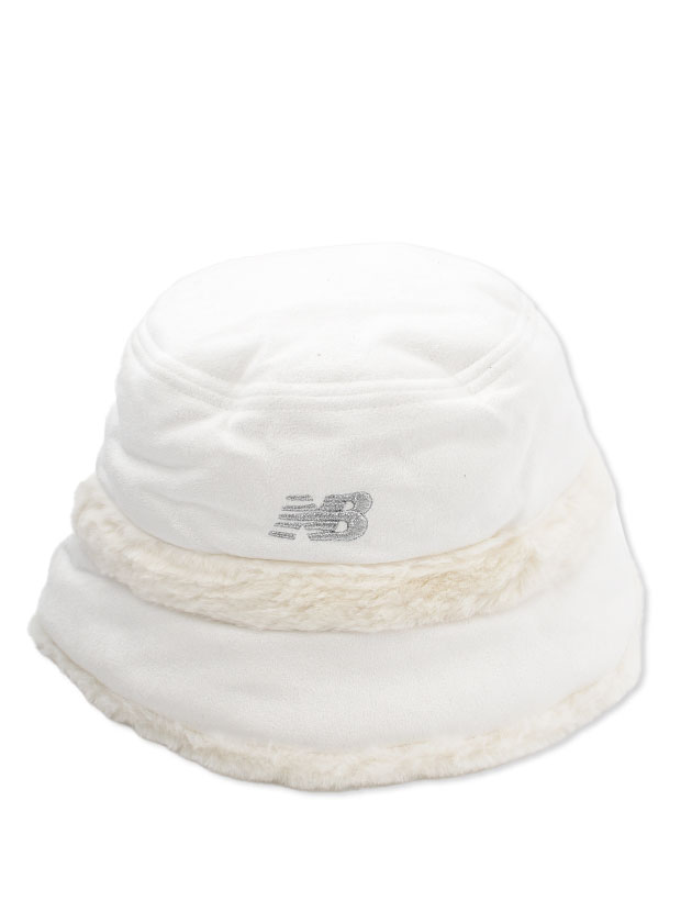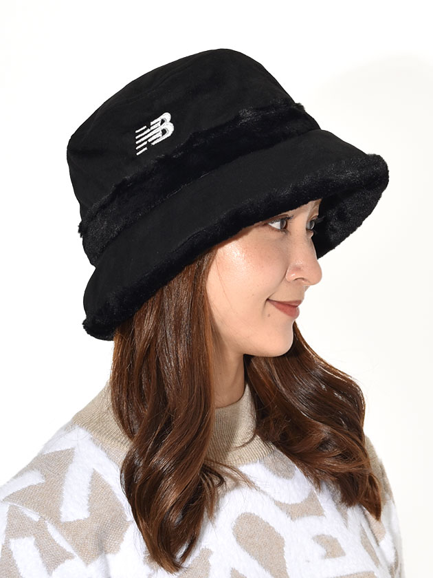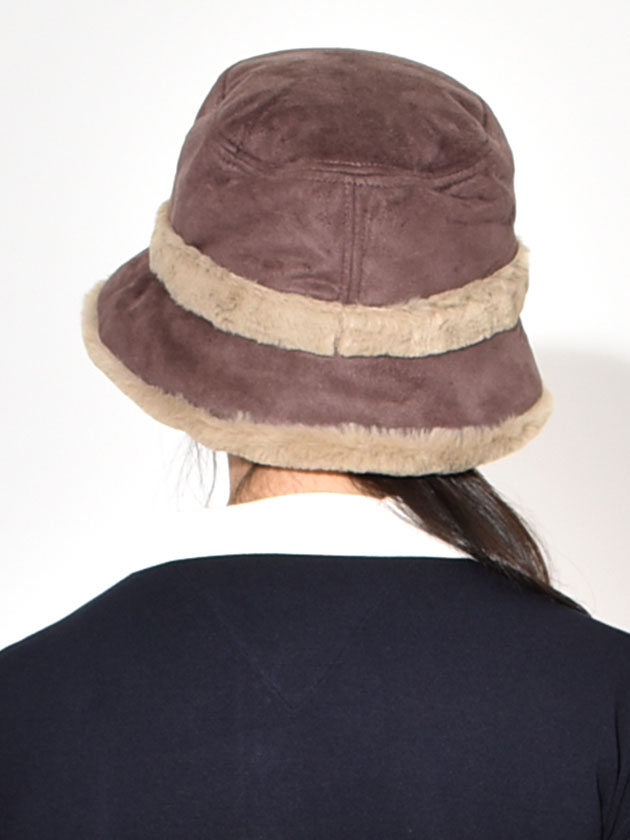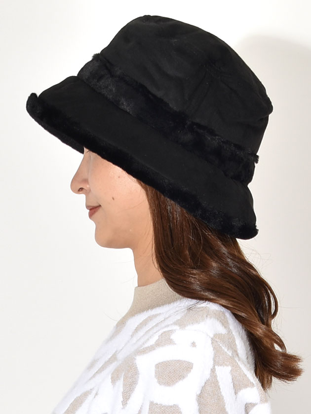 やわらかなフェイクスエードと、シーズンムードを高めるフェイクファーを組み合わせた上品なバケットハット。