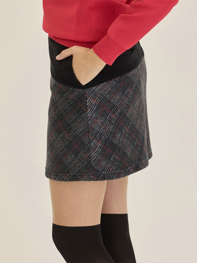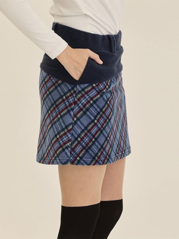 軽くて暖か、動きやすく快適な着心地のチェック柄フリーススカート