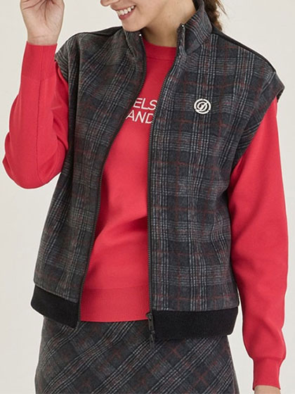デルソル 25年秋冬新作 チェック柄フリースベスト 7912