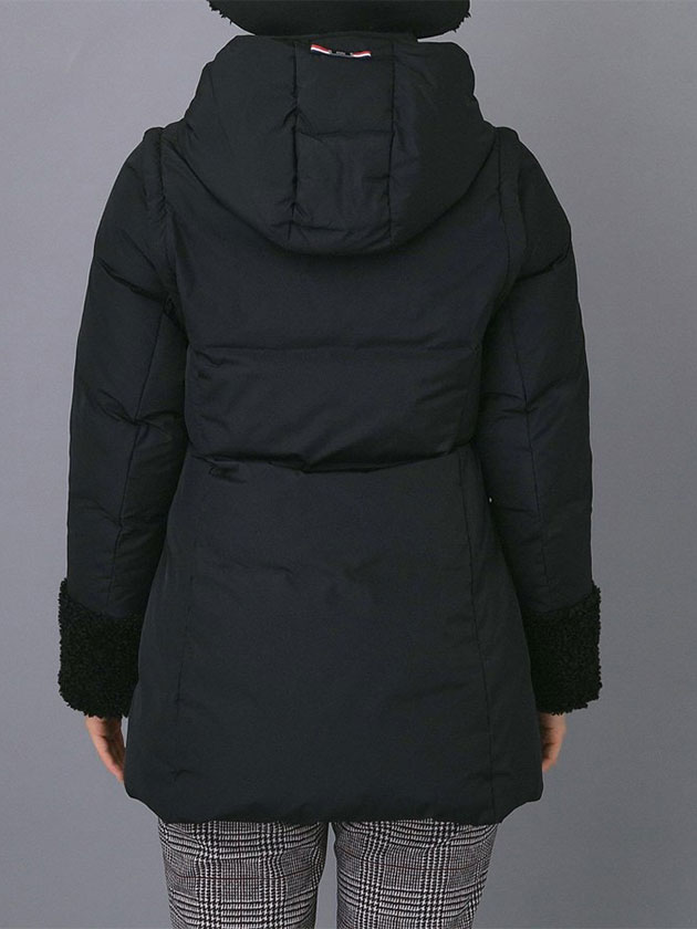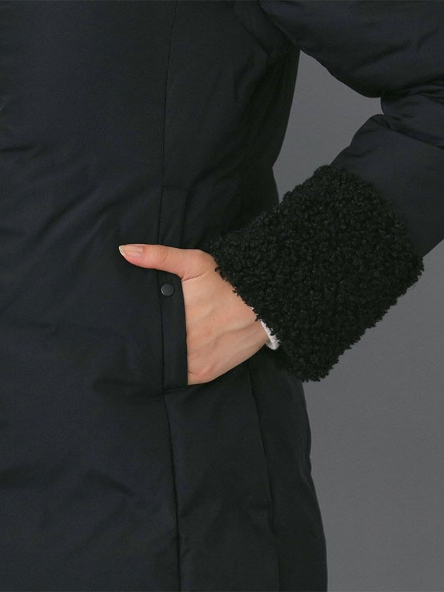 表地:本体 ナイロン100% ボア部分 ポリエステル100% ジャージ部分 アクリル44% レーヨン30% ナイロン24% ポリウレタン2% 裏地:ポリエステル100% 詰物:本体 ダウン90% フェザー10% その他 ポリエステル100%