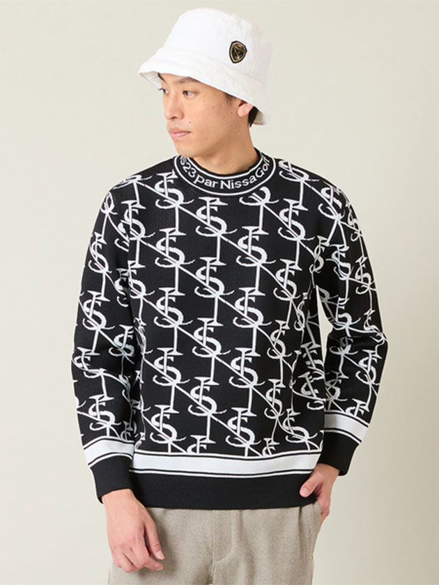ニッサゴルフ 25年秋冬新作 モノグラム柄ニットトップス(メンズ) 23135502