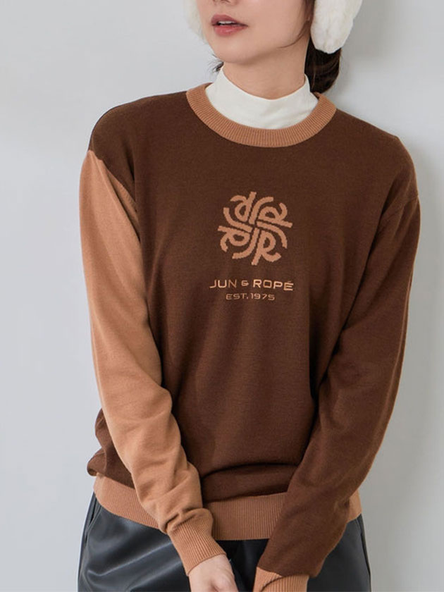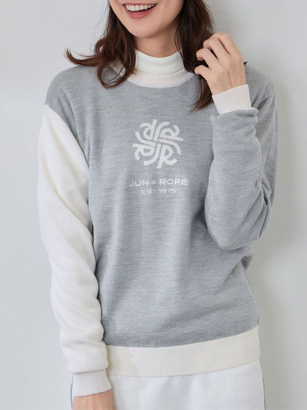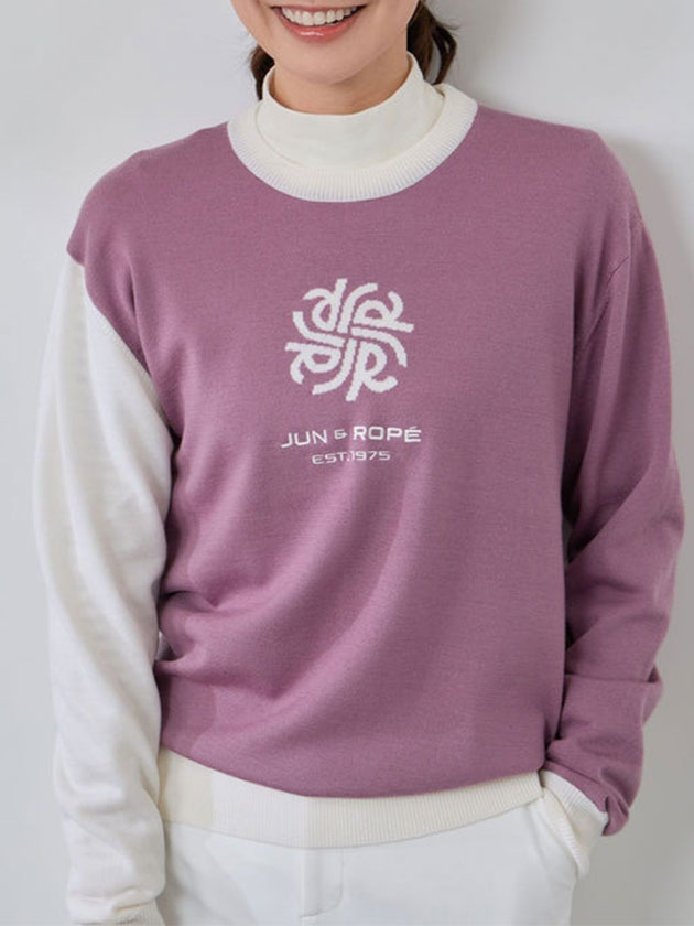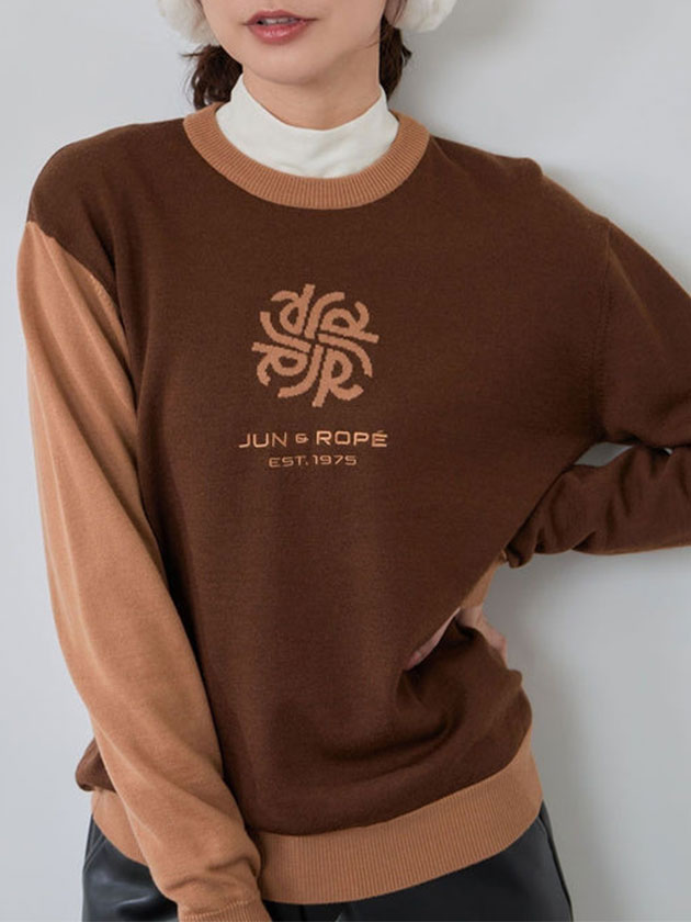 ジュン&ロペ 25年秋冬新作 モノグラムモチーフ配色長袖クルーニット ERM75300