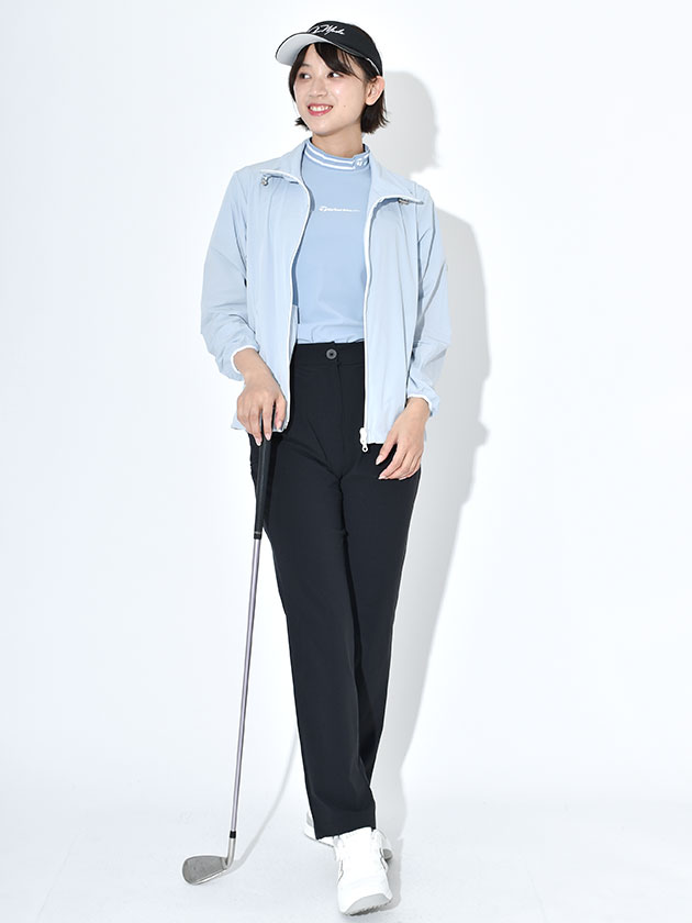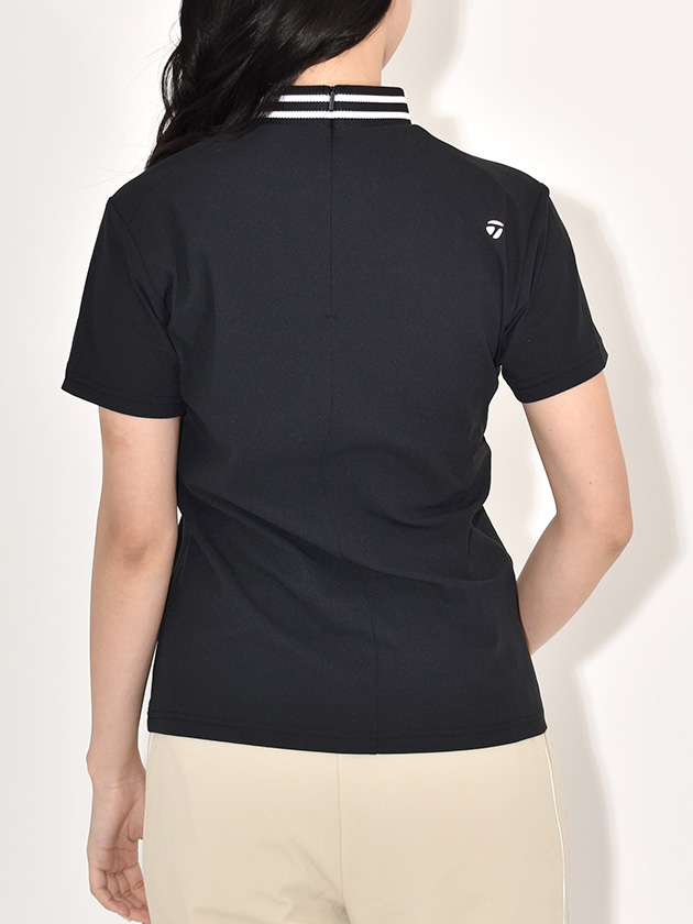 ストレッチ性に優れ、スイング時も動きを妨げない快適なフィット感が魅力です。襟元はライン入りのリブデザインで、シンプルながらスポーティーなアクセントをプラス。UVケア機能も備え、日差しの強い日のラウンドでも安心して着用できます。機能性とデザイン性を両立した、着回し力の高い一枚です。