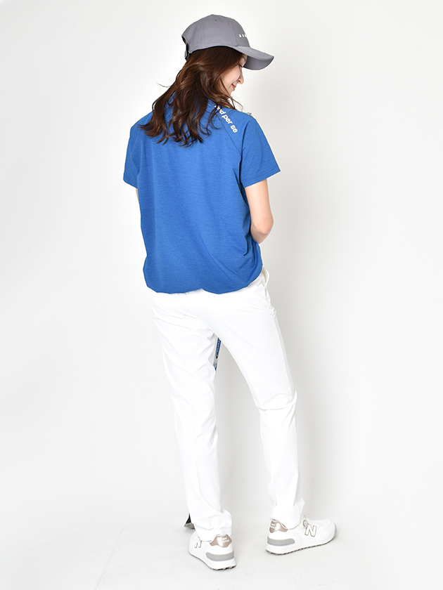 マルチストレッチ、吸汗速乾、UVプロテクト(UPF50+、紫外線カット率95%以上)、抗菌防臭機能を完備した、滑らかな風合いのコットンタッチ天竺カットソー素材を採用。フロントは裾をイン、バックはアウトするカジュアルな着こなしが出来るFIBO(Front in Back Out)を採用。ゴルフだけでなく日常使いにもおすすめです。一部リサイクルポリエステル素材を使用した環境配慮型素材になっています。ファッションとスポーツを同時に楽しめるオーバーシルエットが特徴です。