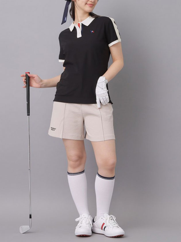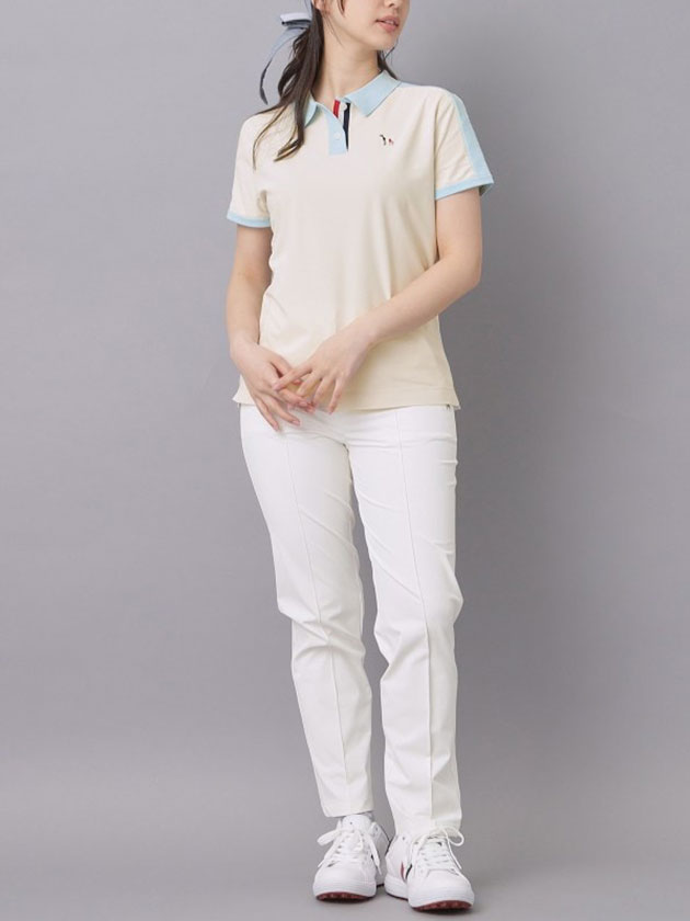 本体:ポリエステル100% 衿:コットン42% ポリエステル37% ナイロン19% ポリウレタン2% その他:コットン53% ポリエステル47%