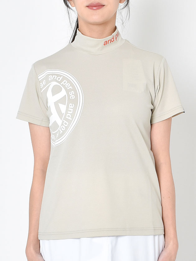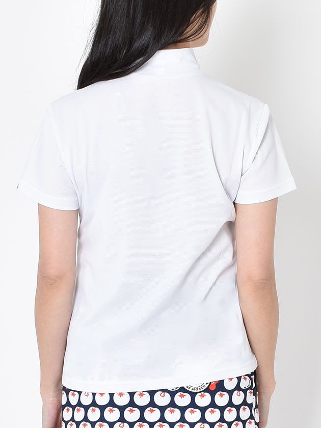涼しげなメッシュ半袖モックネックシャツ。