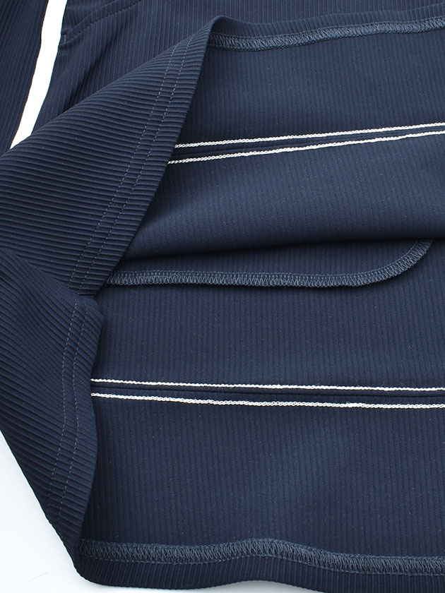 縦方向に凹凸のあるコードピケ素材を使用しており、透けにくく安心感のある着用が可能です。高いストレッチ性により動きやすく、快適な着心地でプレイに最適。表面は滑らかでハリがあり、適度な厚みを持った素材感が特徴です。スタイルアップが期待できる配色デザインに加え、裾にかけてさりげなくフレアを入れたマーメイドフィットのラインがポイントです。 ウエストゴム仕様で締め付けのストレスのないスカートです。