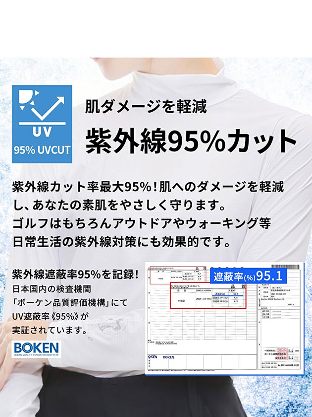 素材独自の接触冷感性により着用時ひんやりCOOLな体感。吸湿性素材で汗をかいてもベタつきにくくドライタッチ。ひんやりサラサラな肌触りで快適な着心地です。紫外線カット率最大95%!肌ダメージを軽減し、あなたの素肌をやさしく守ります。4方向に伸縮するストレッチ素材。