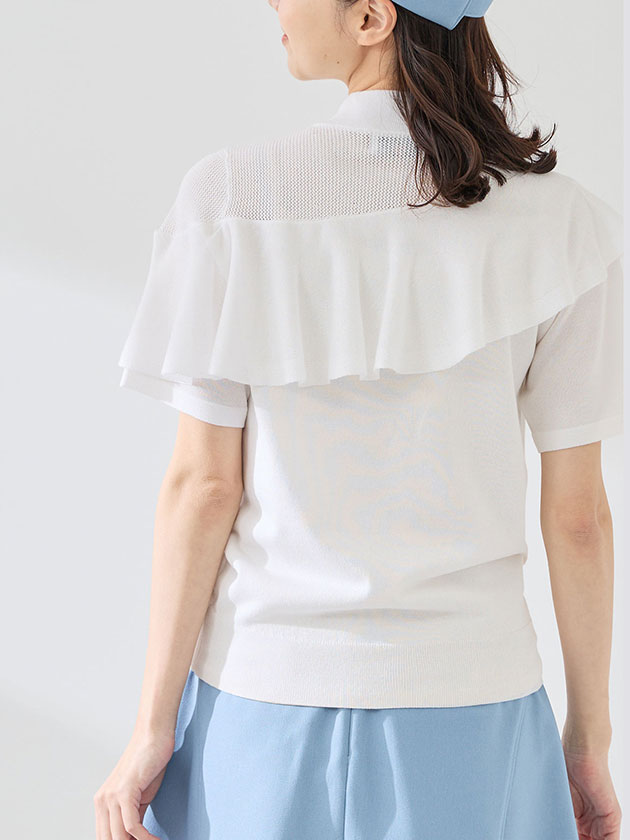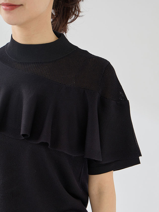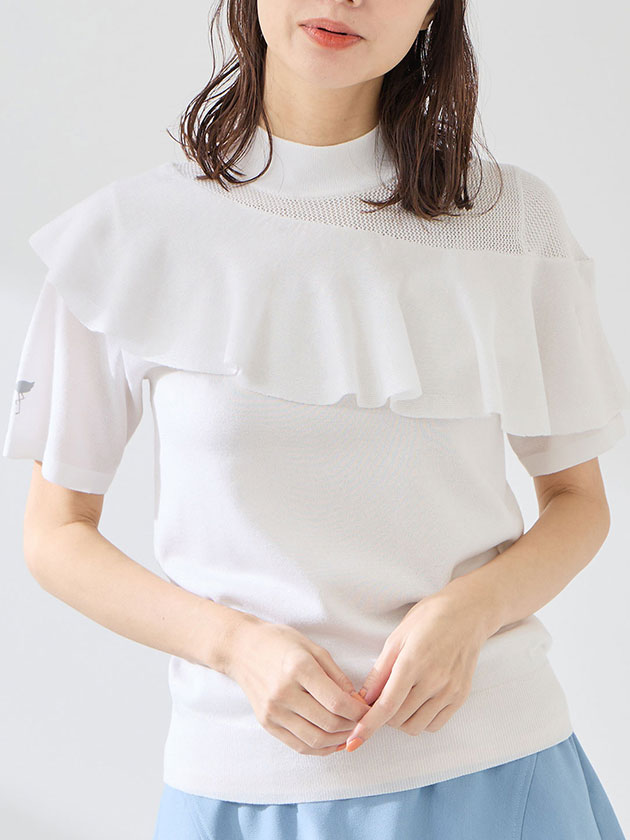 (本体) レーヨン 58% ポリエステル 42% (フリル部分) レーヨン 66% ポリエステル 20% ナイロン 12% ポリウレタン 2%