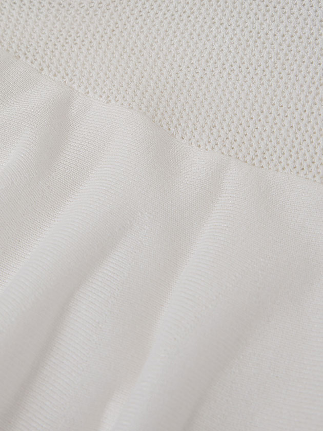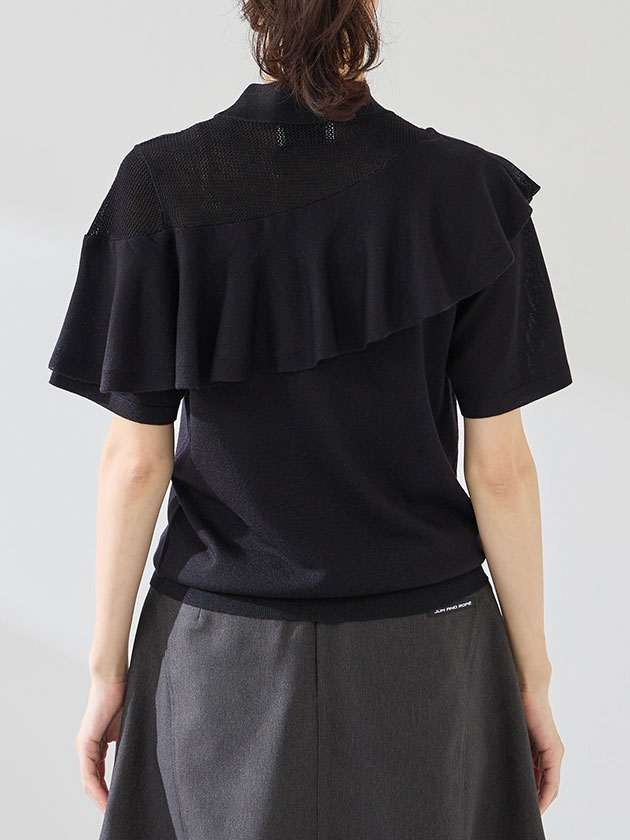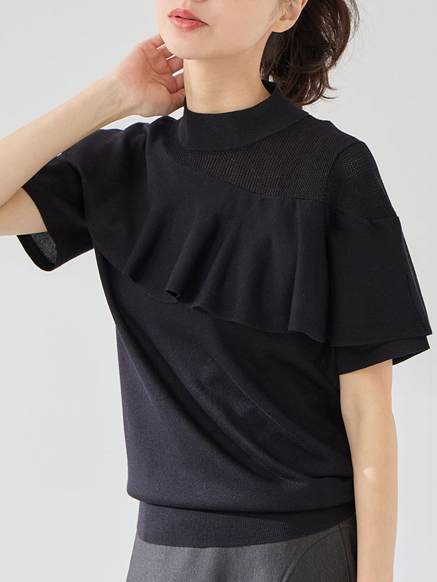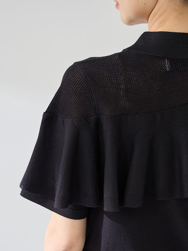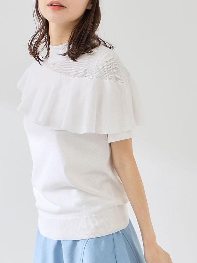 (本体) レーヨン 58% ポリエステル 42% (フリル部分) レーヨン 66% ポリエステル 20% ナイロン 12% ポリウレタン 2%