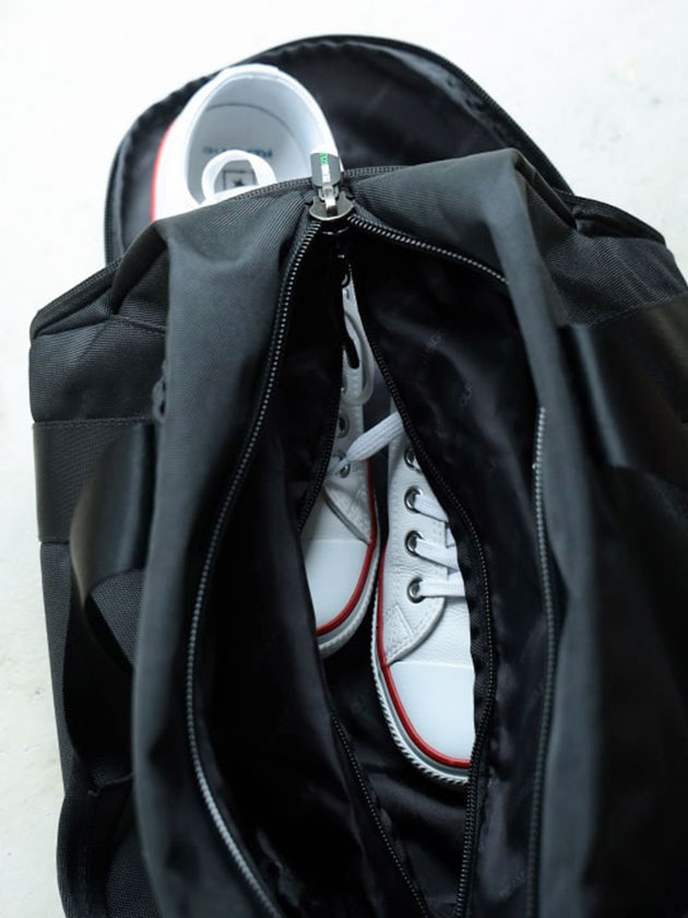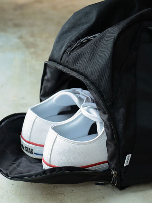 ・シューズ収納ポケット付き(セパレート仕様)・外側ポケットあり(両サイドからアクセス可能)・大容量メイン収納・シューズ:約29cmまで(外寸32cmまで)