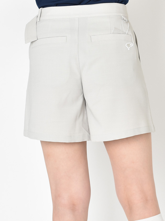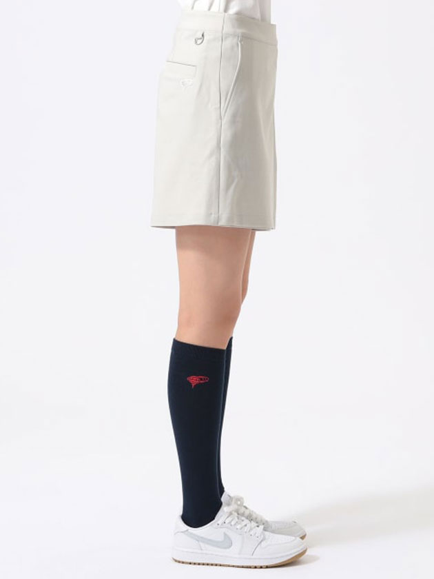 カート見えするラップデザインが上品な印象を与えるキュロット。女性らしい柔らかさと、アクティブに動ける快適さを兼ね備えた、大人のゴルフスタイルにぴったりの一着です。シンプルで洗練されたシルエットは、どんなトップスとも好相性。幅広いコーディネートに取り入れやすく、着回し力の高さも魅力です。ラップ構造が気になる腰まわりを自然にカバーしながら、すっきりとしたラインを演出。ストレッチ性にも優れ、スイングや歩行時の動きを妨げない快適な穿き心地を叶えます。バックポケット上部にはさりげない地球ロゴを配置し、デザインのアクセントに。さらにDカン付きで、ポーチやアクセサリーの装着も可能な実用性も備えています。麻のようなシャリ感を再現したリネンライク素材を使用し、軽やかで涼しげな着用感に。見た目にも着心地にもこだわった、春夏シーズンに活躍するアイテムです。