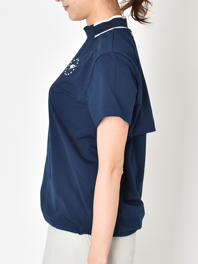 軽やかに、快適に。リラックス感漂う大人のモックネック。高機能素材「Primeflex」を使用した、軽やかな着心地が魅力のモックネックシャツ。ゆったりとしたシルエットがこなれた印象を演出し、ゴルフスタイルに程よい抜け感をプラスします。胸元には15周年アニバーサリーロゴをさりげなくあしらい、シンプルながらも特別感のあるデザインに。背面にはベンチレーションを配置し、内側をメッシュで切り替えることで通気性を確保。暑い日のラウンドでも快適さをキープします。裾のドローコードでシルエットの調整も可能なので、ボトムスに合わせた着こなしも楽しめる一枚。機能性とデザイン性を兼ね備え、リラックスしながらもスマートに決まる、着回し力の高いアイテムです。