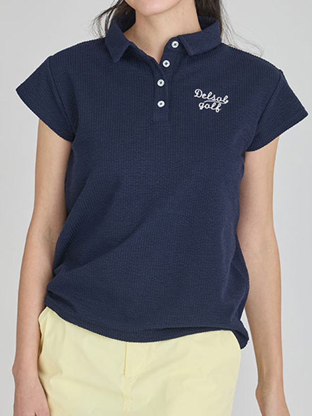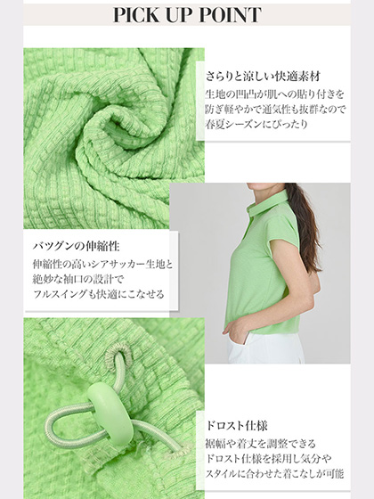 デルソルゴルフ 26年春夏新作 シアサッカー裾ドロストキャップスリーブシャツ 7920