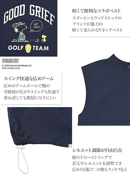 デルソルゴルフ 26年春夏新作 PEANUTSコラボ ライトVネックベスト 7927