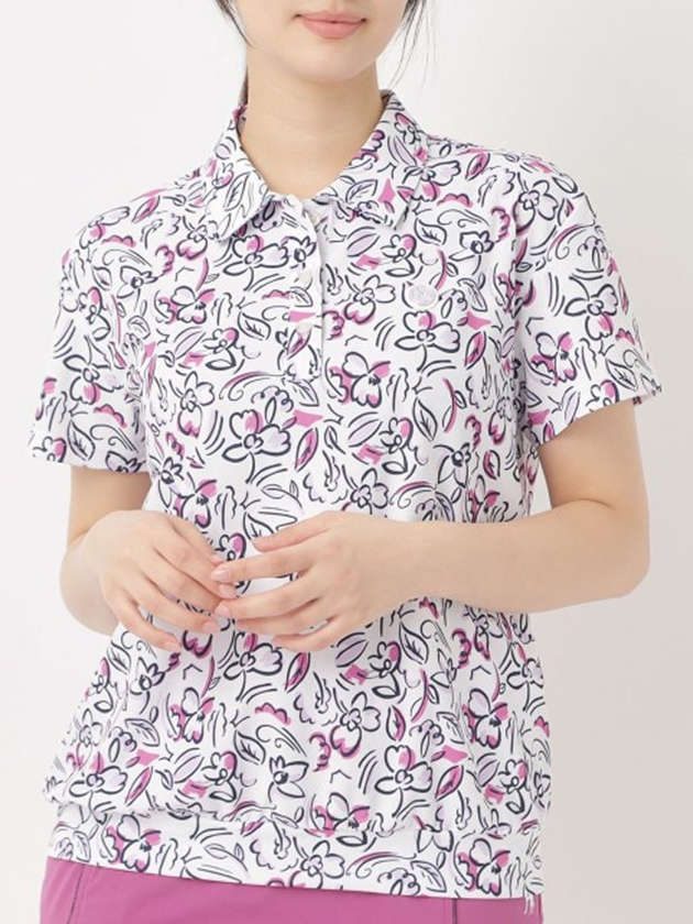アダバット 26年春夏新作 ラインフラワープリント半袖ポロ 119-15421